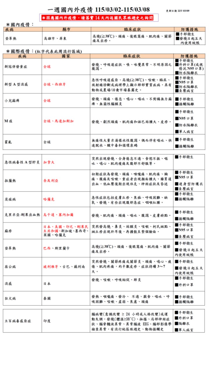 傳染病訊息